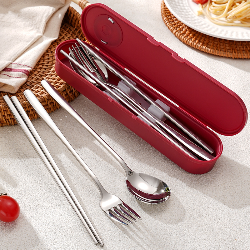 316ステンレス箸スプーンセット携帯ケース食器ステンレス食器ケース旅行学生携帯食器