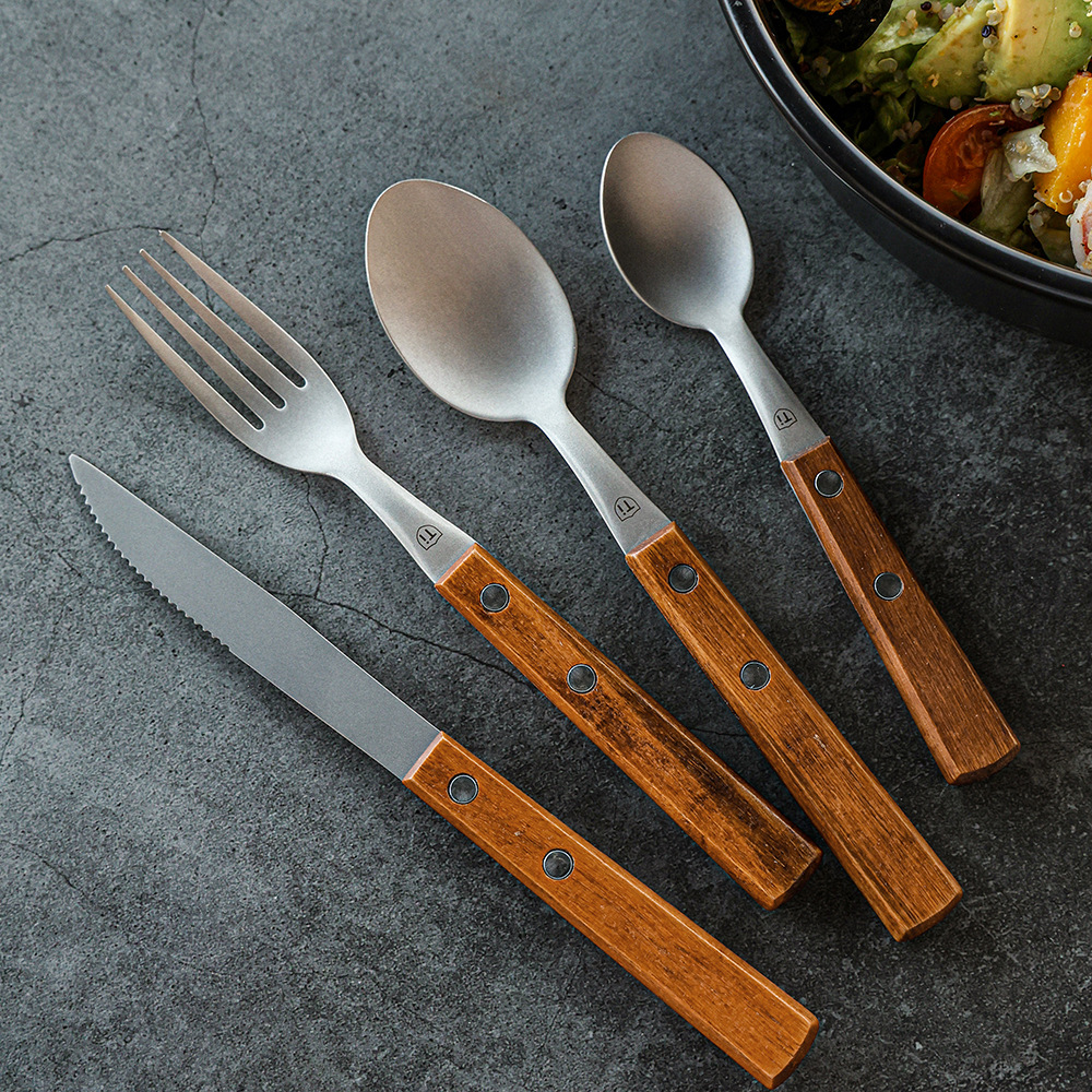 Aチタン木304ステンレスくるみ木柄ナイフフォークスプーンホテル食器セットチタン浄化洋食ステーキナイフフォーク