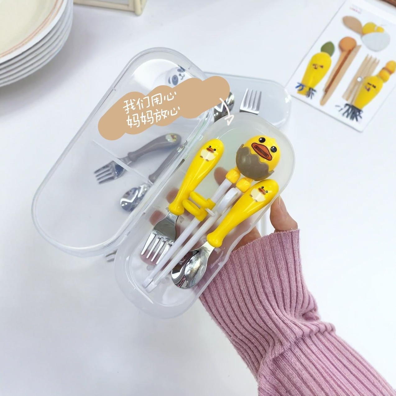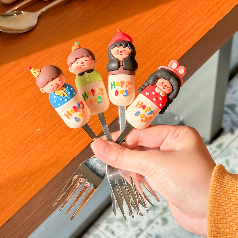 Ins風かわいいアニメ子供趣味ステンレスフォークスプーンセット家庭用子供携帯食器誕生日プレゼント