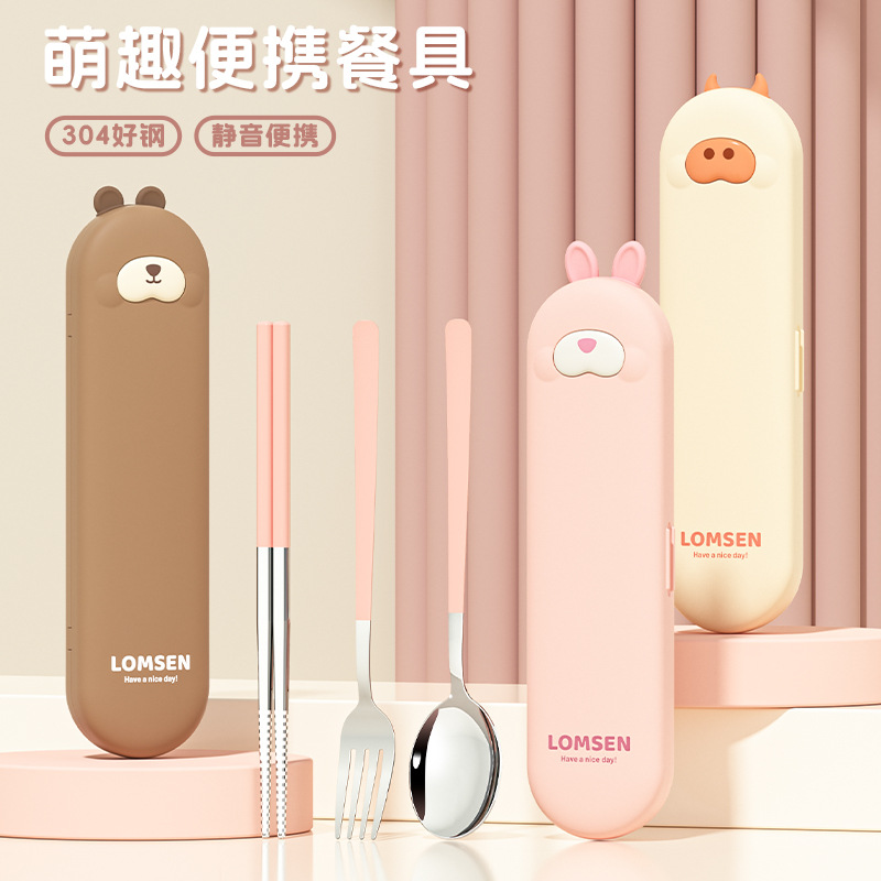 ステンレスかわいい風チーズ携帯食器3点セットサラリーマン学生屋外キャンプ箸スプーンフォーク