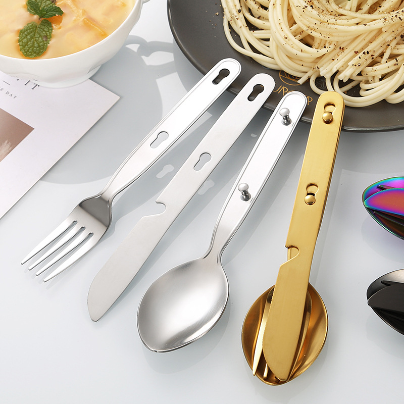 クロスボーダー畳み込みナイフフォークスプーン3点セットアウトドアポータブル食器セットピクニック小型ナイフフォークスプーン3点セット