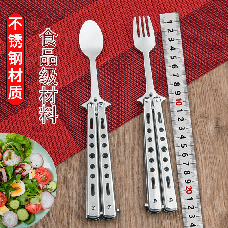 ステンレス蝶ナイフ屋外ポータブル折りたたみ蝶练习フォークスプーンCSGO蝶练习ナイフ刃なし
