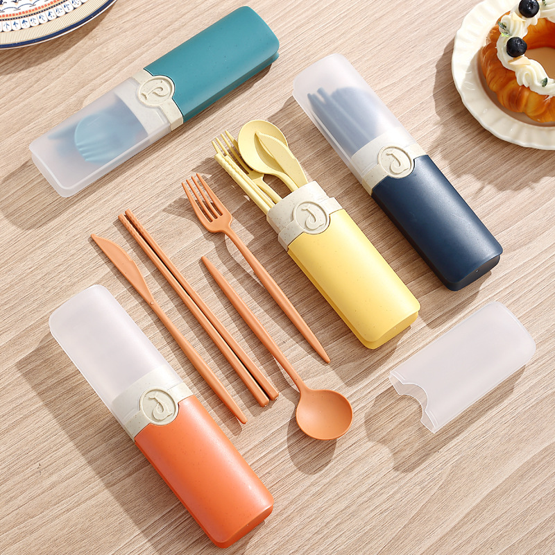 小麦わら折りたたみカトラリーセットクリエイティブ取り外し可能フォークスプーン箸ポータブルカトラリーギフトセット