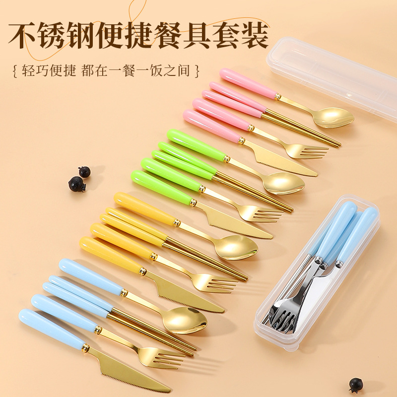 国境を越えたアマゾン携帯ポルトガル食器箸ナイフとフォークスプーンの屋外炊飯食器の4セット卸売り