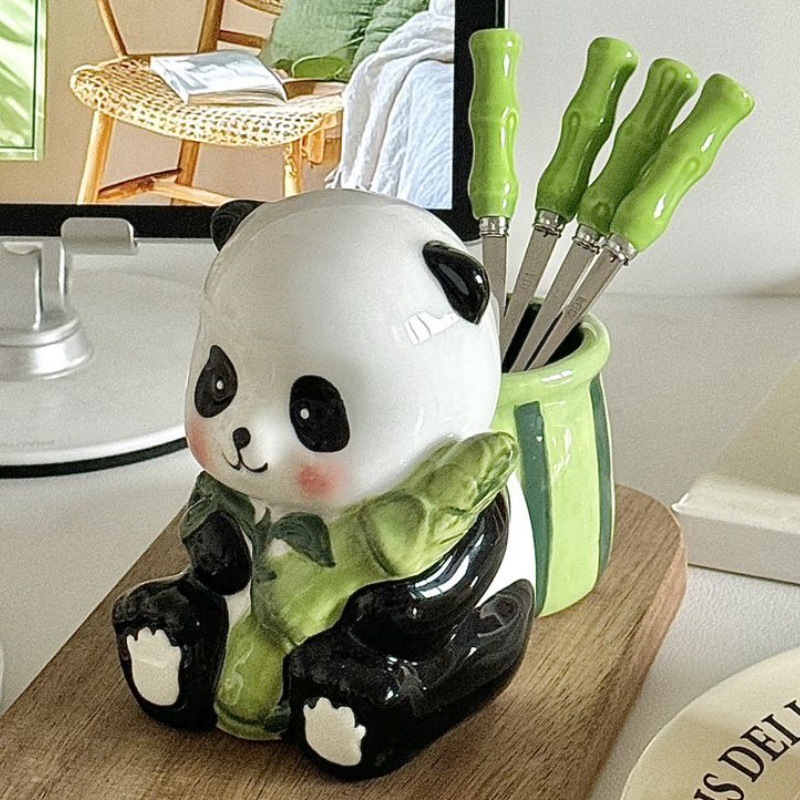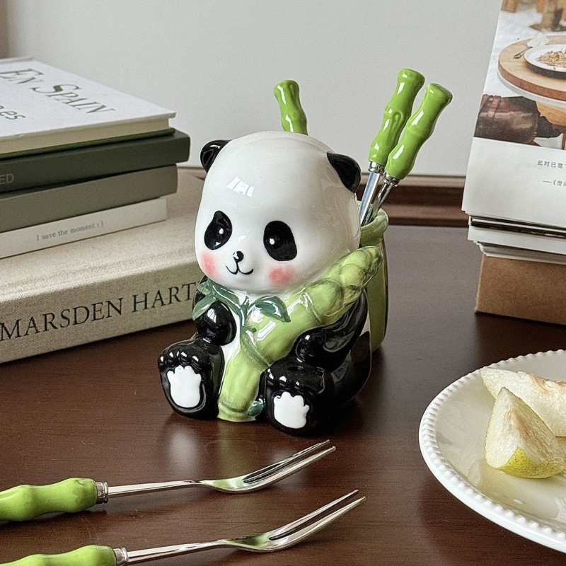 超かわいいパンダフルーツフォークセット 304 ステンレス鋼子供用フォークホームレストランセラミックフルーツフォーク保存瓶