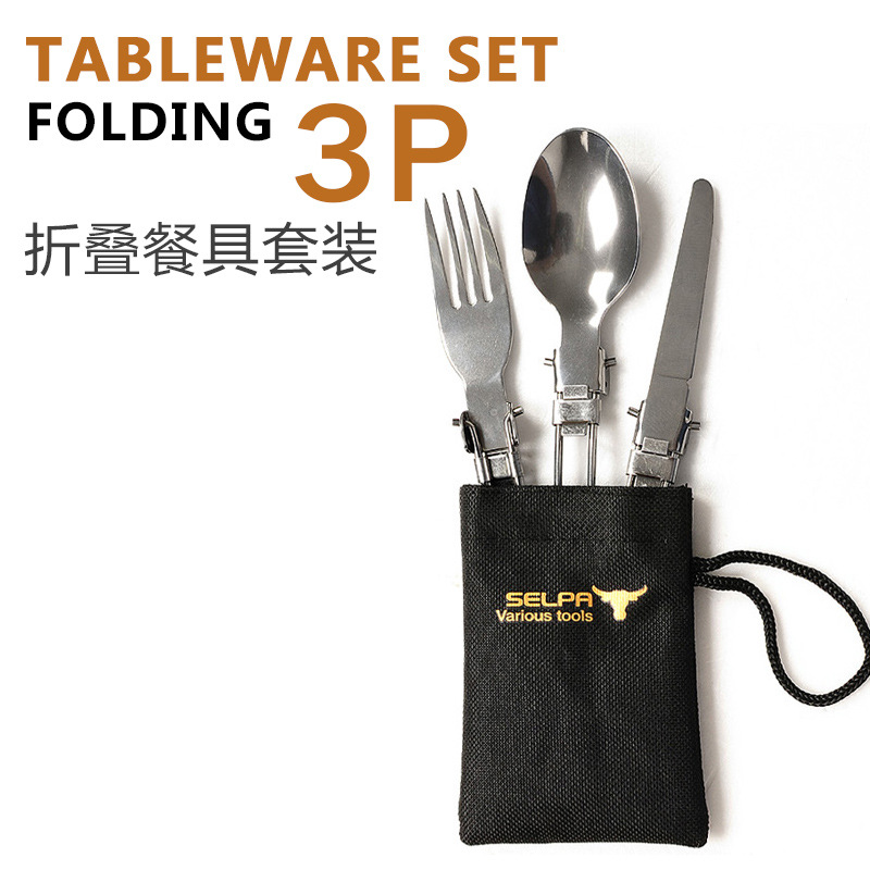 国境を越えた売れ筋キャンプ洋食ステンレス食器セット 3点セット 収納袋 スプーン フォーク 19本の箸