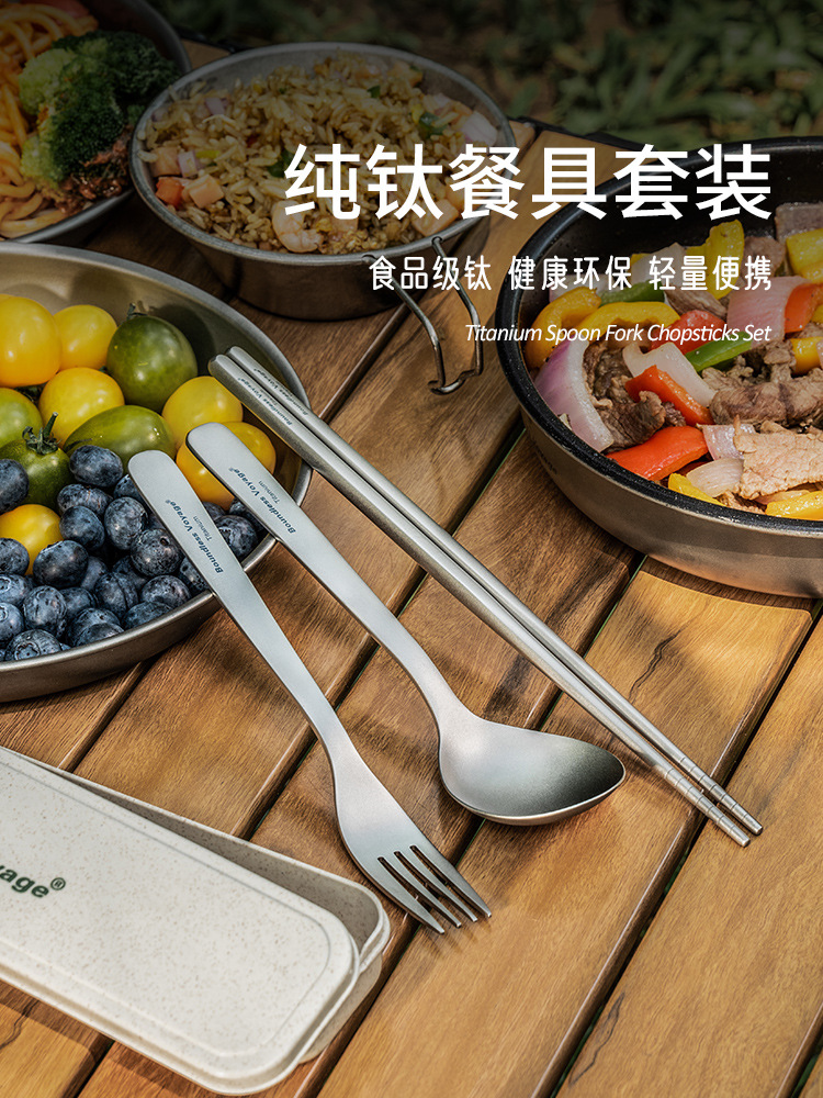 卸売純チタンアウトドア食器セットキャンプスプーンピクニック箸キャンプフォーク軽量ポータブルスープスプーンライススプーン