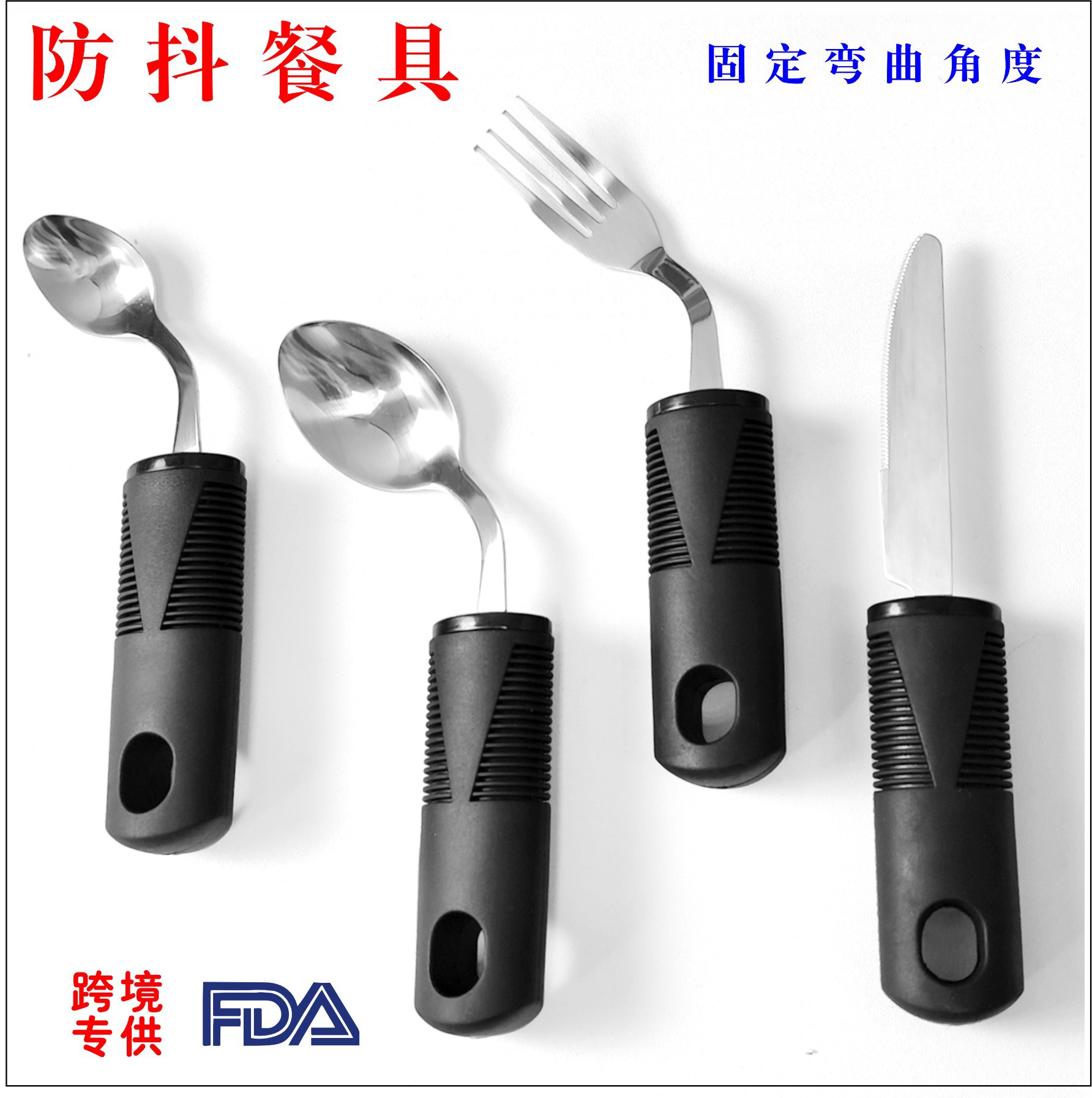 高齢者向けのステンレス製固定曲げゴムおよびプラスチックハンドルの揺れ防止食器、適応リハビリテーション食品ナイフ、フォーク、スプーンセット