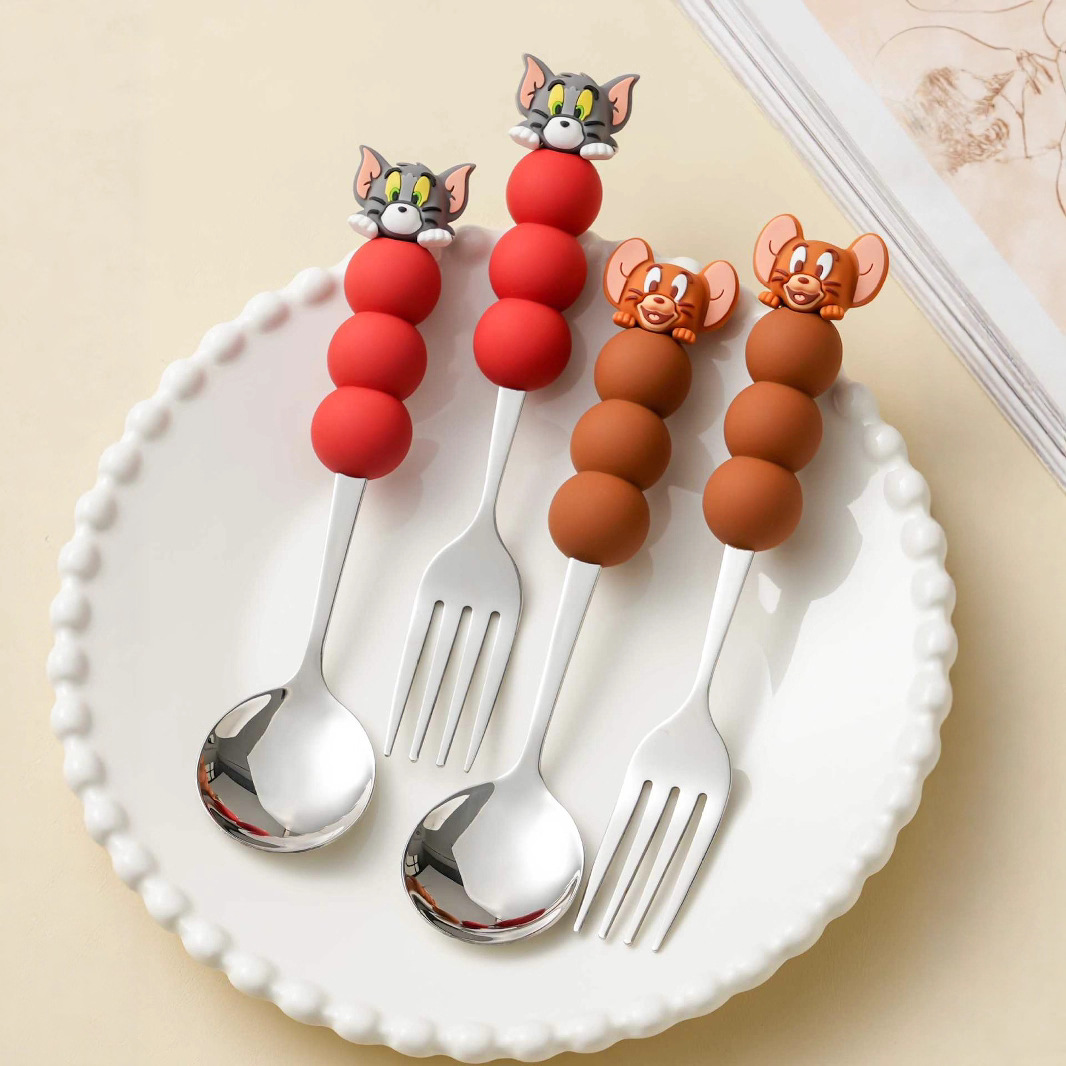 漫画IPトムとジェリースプーン小学生3点セット1人用フルーツフォークスプーンかわいい食器