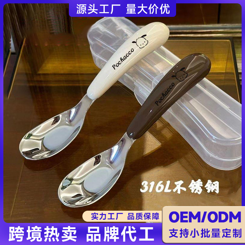 工場ホット販売ステンレス鋼スプーン元宝スプーン子供用食器ベビーフードスプーンポータブルスプーン元宝トレーニングスプーン