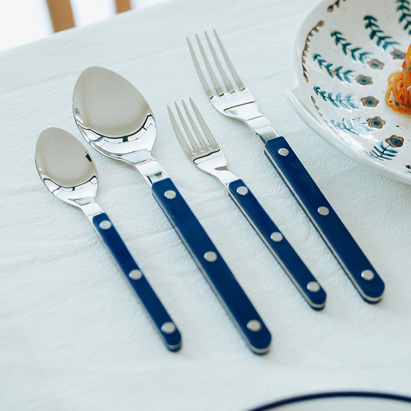 ブルーアクリル洋食ナイフフォークスプーンセットステーキホテルレストランステンレス鋼食器デザートセット卸売