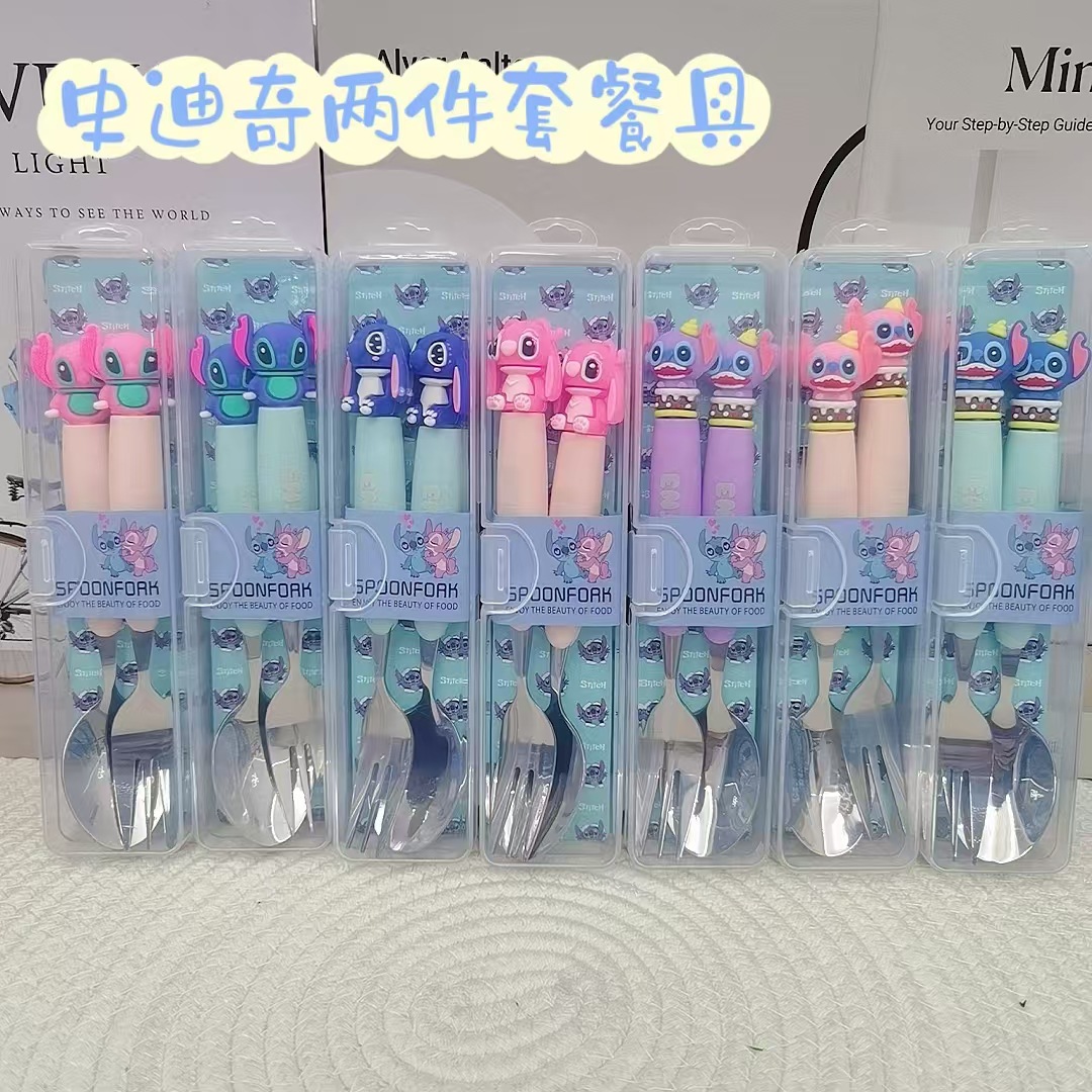 新しいステッチポータブル漫画 410 ステンレス鋼食器 2 ピースフォークとスプーンセット学生フォークとスプーンセット