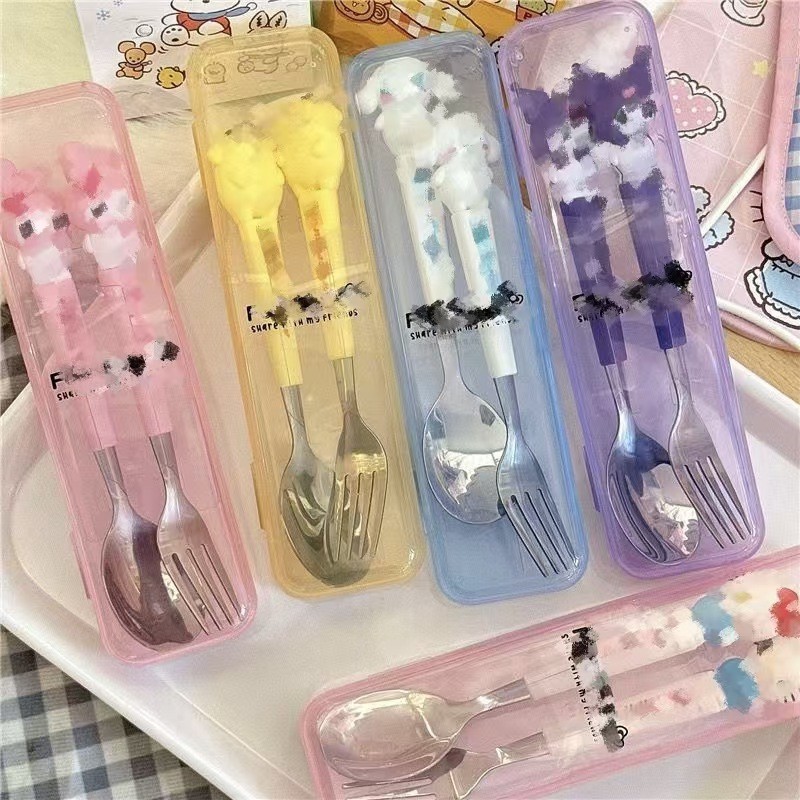 ステンレス鋼のポータブル食器セットかわいい漫画子供用食器学生屋外旅行スプーンとフォーク 2 点セット