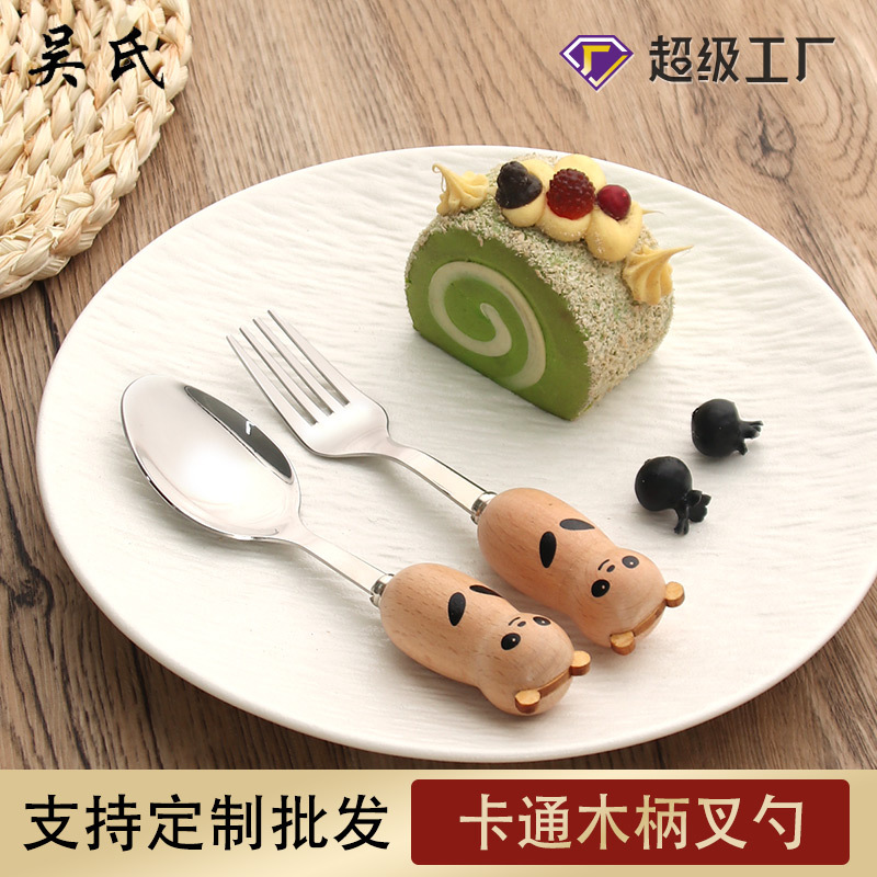 漫画インスタイル木製ハンドルスプーンフォーク韓国のかわいいレッサーパンダコーヒー スプーンアイスクリーム スプーンデザートフォーク