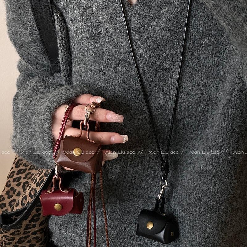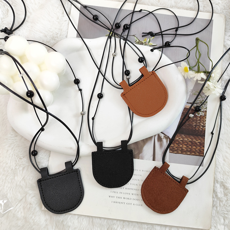 小さくて可愛い革の小銭入れのネックレスの女性のストラップイヤホンカバーの革紐の毛のチェーンの長いタイプのアクセサリーはカバンを収納します。