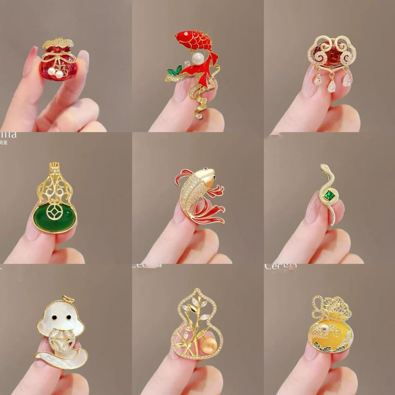 錦鯉福袋高級ブローチエナメル銅メッキ合成蜜ろう銭袋古風胸花高級感ピンアクセサリー