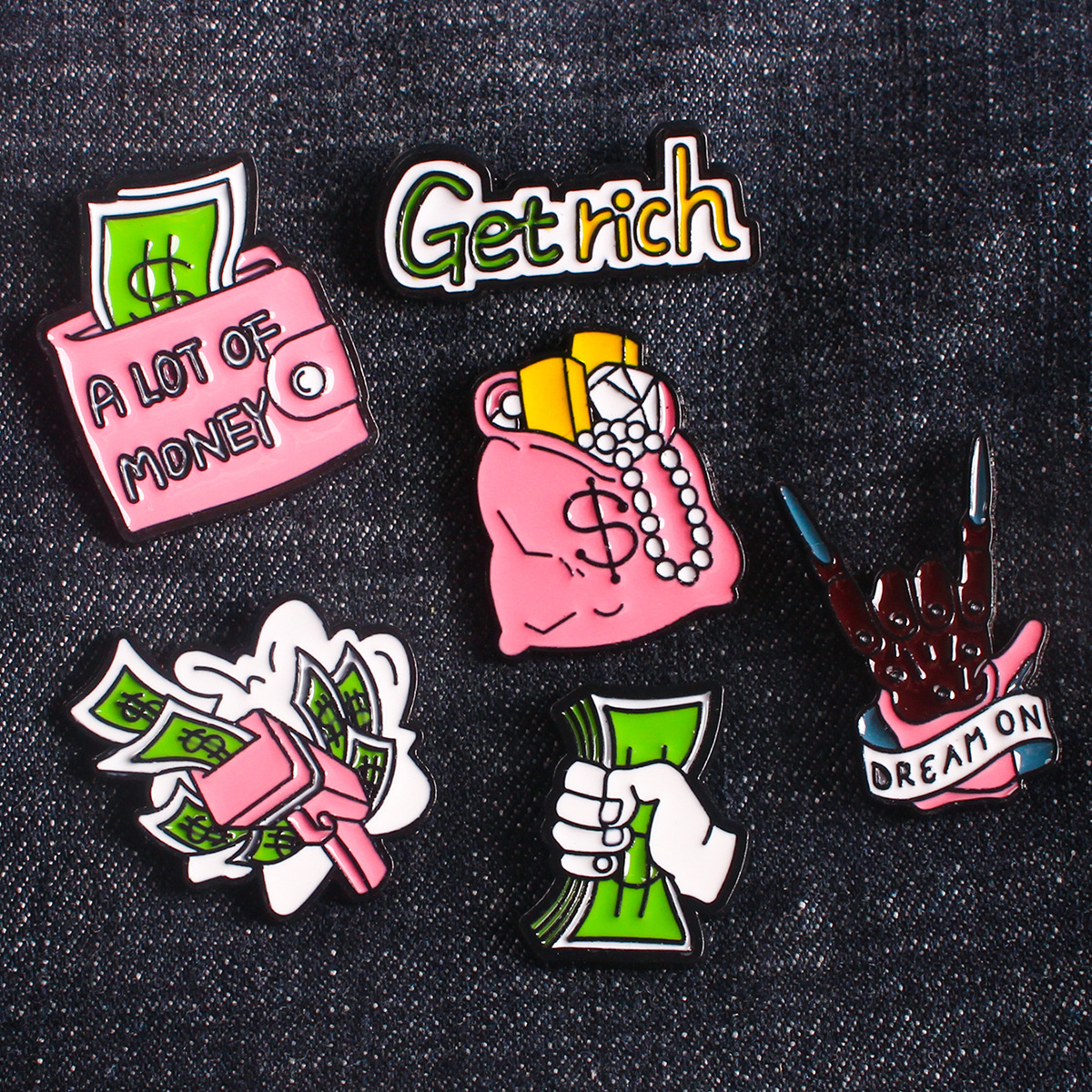 ファッションアイデアGet richアルファベットトレンドブローチ财布个性ジュエリーバッジピンギフトアクセサリーアクセサリー