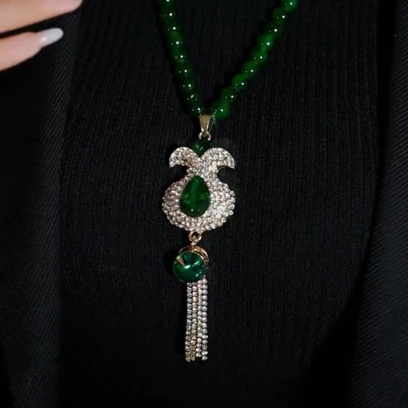 新中国式高級セーターチェーン秋冬百合高級感ネックレスアクセサリー服ペンダント緑如意ペンダント