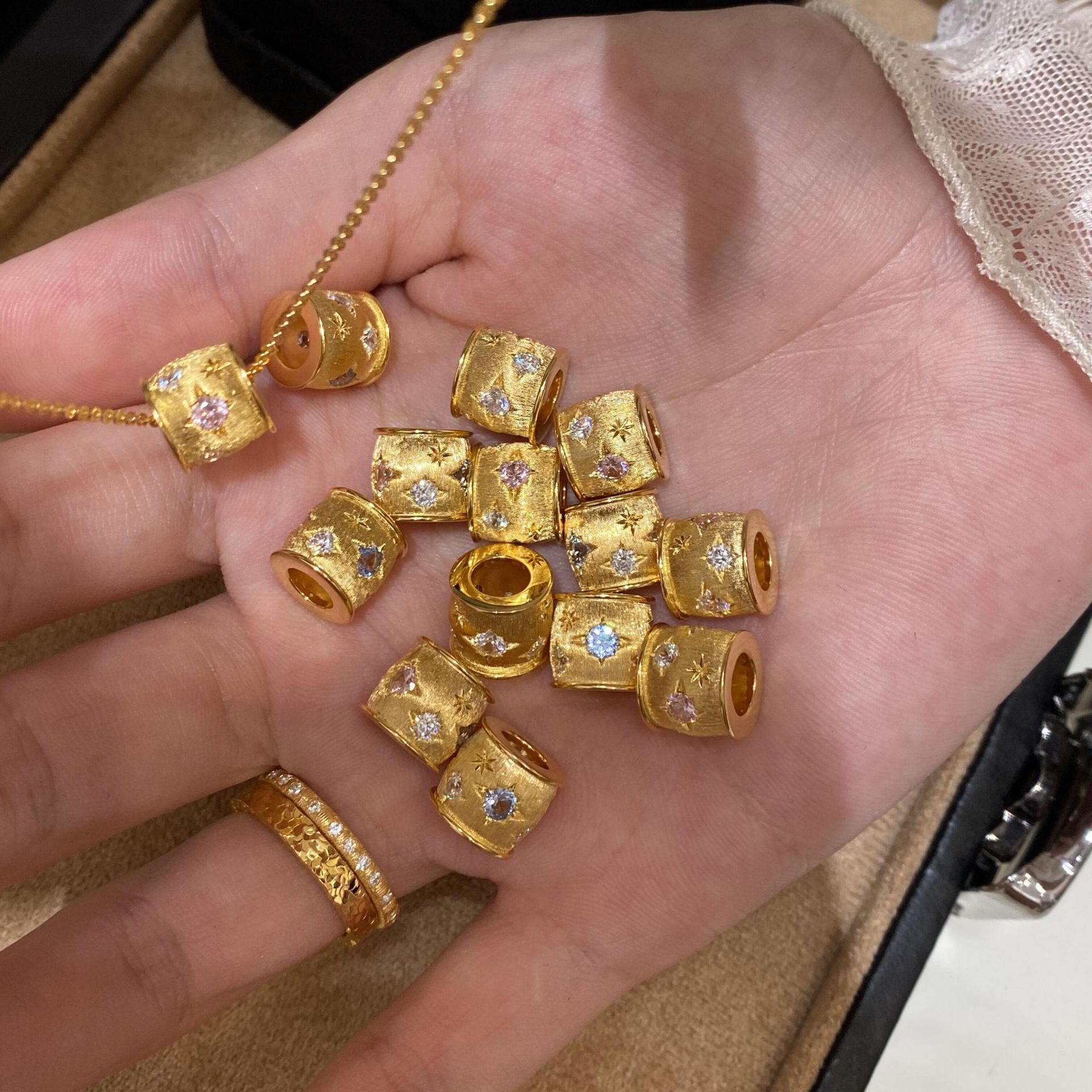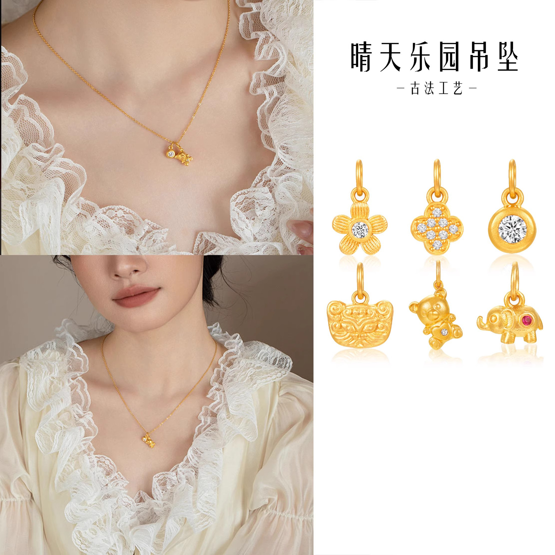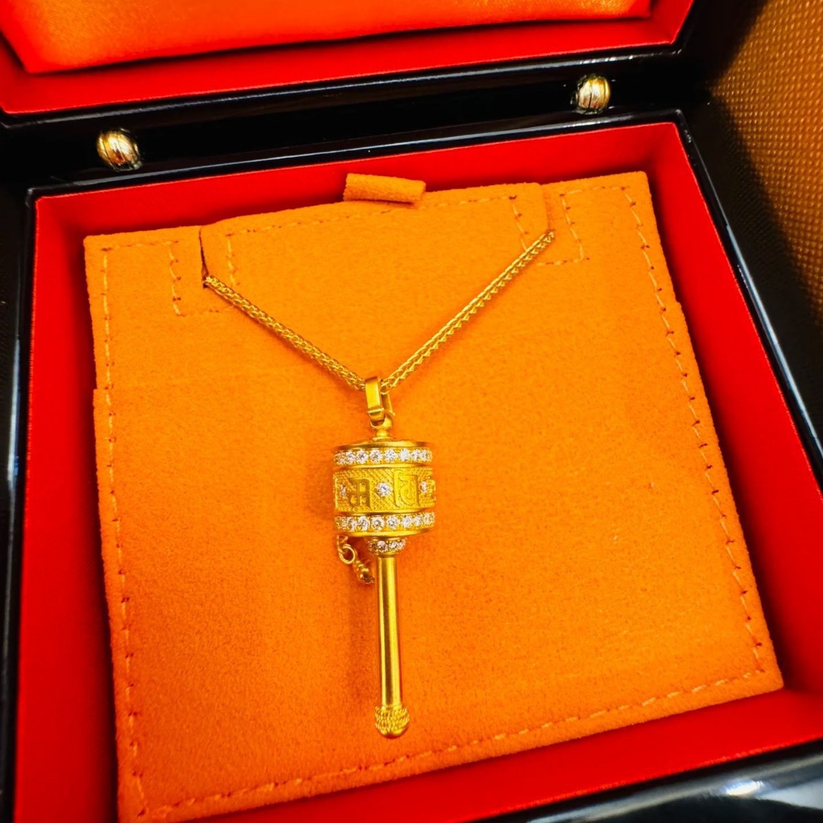 ゴールドストアと同じスタイルのガラガラペンダントネックレス、女性用、古代サンドゴールド、パーソナライズされたファッション、縁起の良いレトロな気質、ショパールチェーン