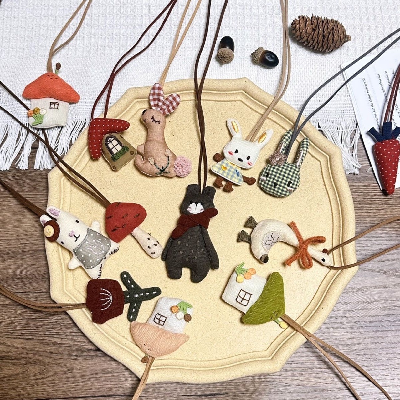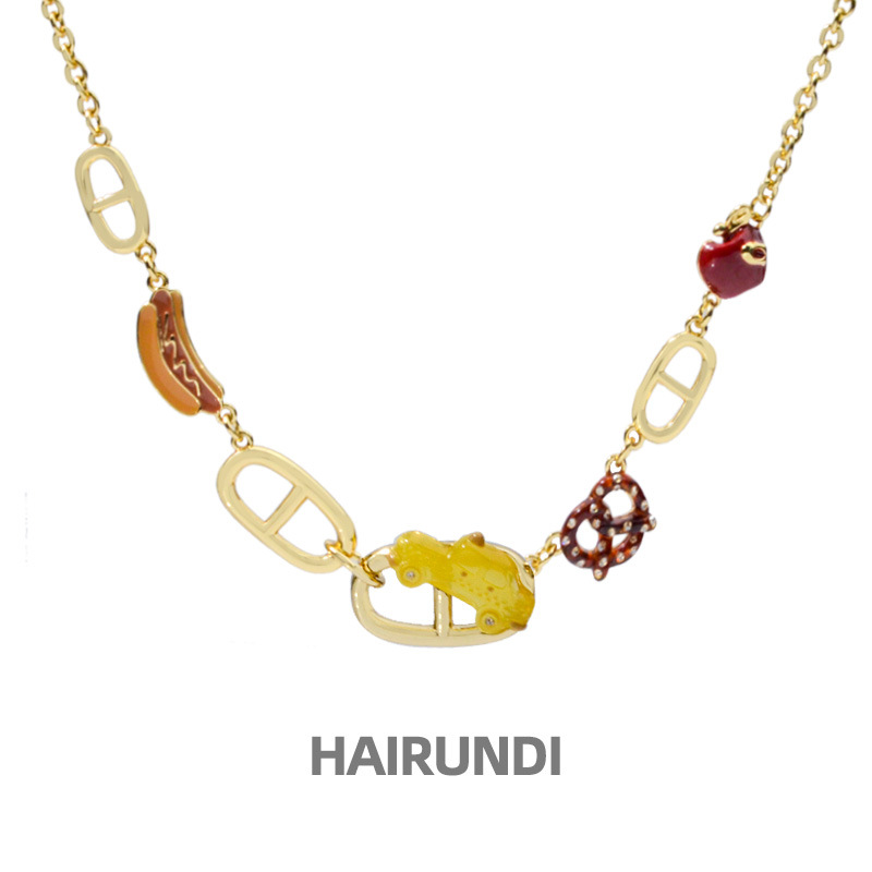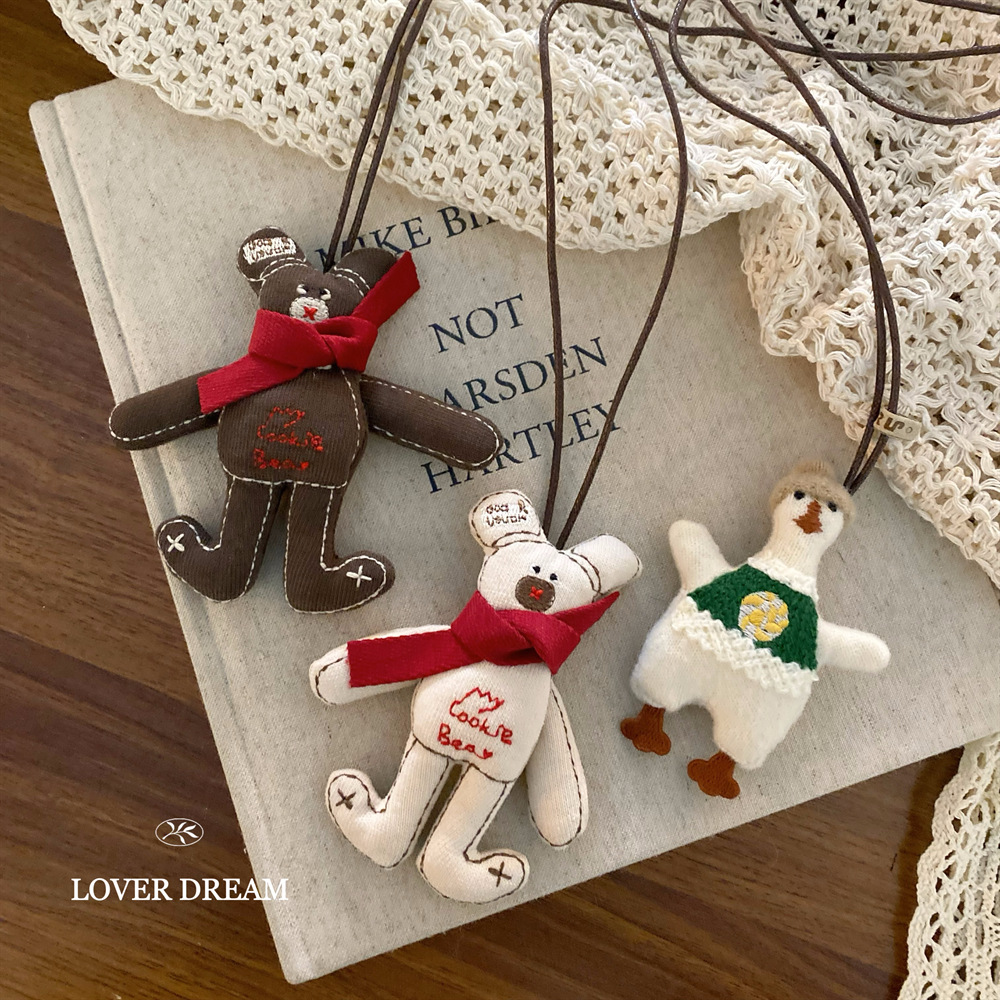 秋と冬の新しい動物漫画生地綿充填手刺繍ぬいぐるみホルターネックネックレスアクセサリーセーターチェーン女性のための