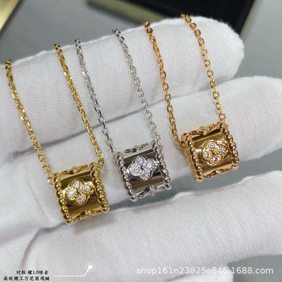 V金ファンケル万華鏡ネックレス レディース ダイヤモンド装飾 ファッション鎖骨チェーン S925シルバー 18Kゴールドメッキ 精密彫刻 工場卸売