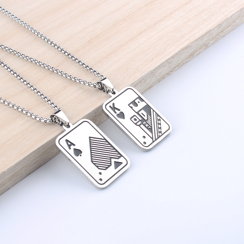 メンズネックレス トランプ スペードK ペンダント ヒップホップ 個性派 セーター スウェットチェーン ステンレス カップルアクセサリー 卸売