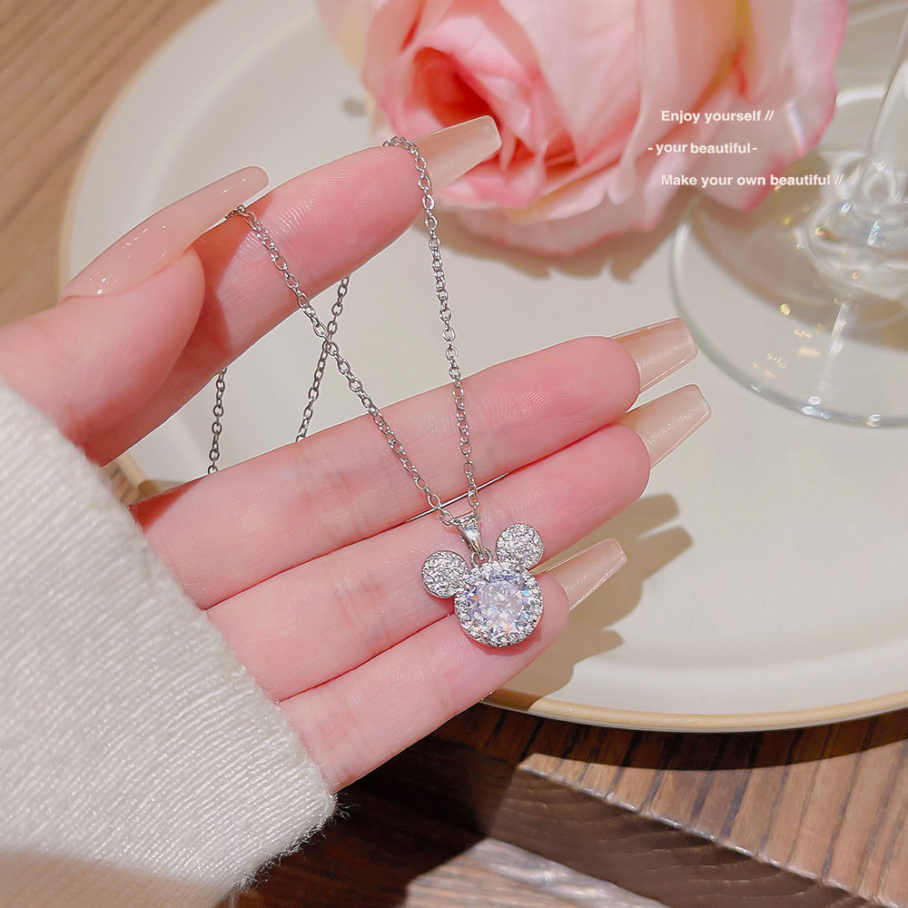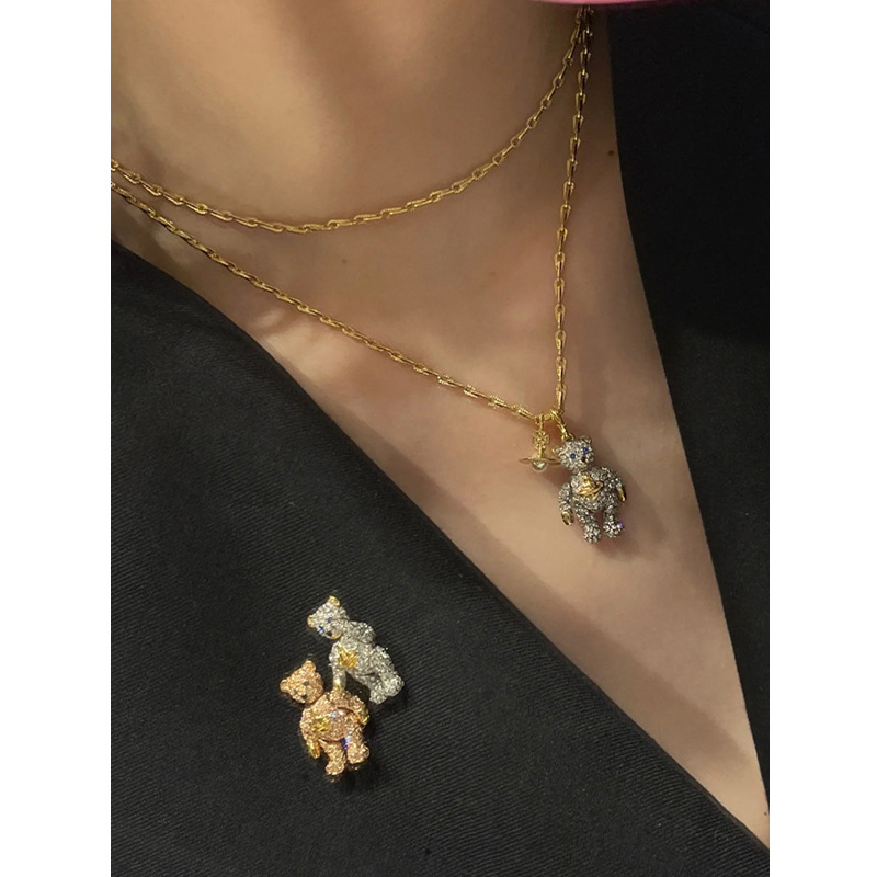 ファッショナブルで軽い高級感、遊び心とかわいいクマの形をしたダイヤモンドがちりばめられたネックレス、鎖骨チェーン、女性向けの楽しいニッチネックレス、在庫あり