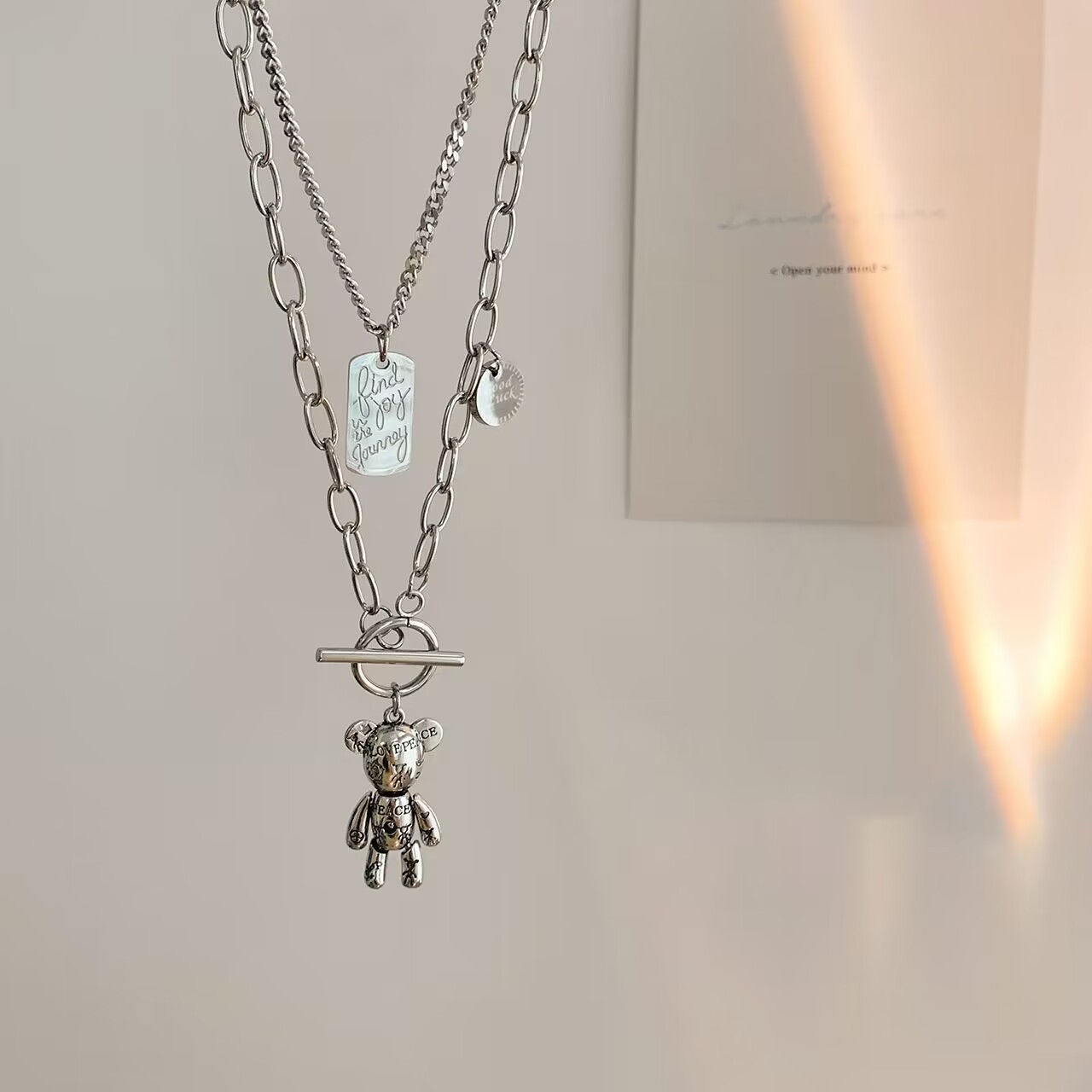 韓国版2022年新作ファッションセーターチェーンのロングタイプの小衆熊ペンダント二重ガードルチタン鋼ネックレスアクセサリー