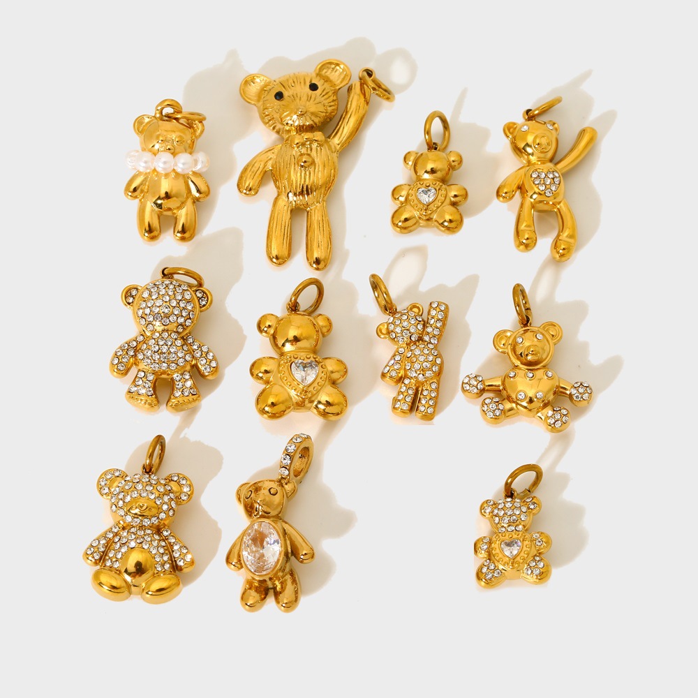 キラキラと豪華な熊のペンダントのデザイン感があります。