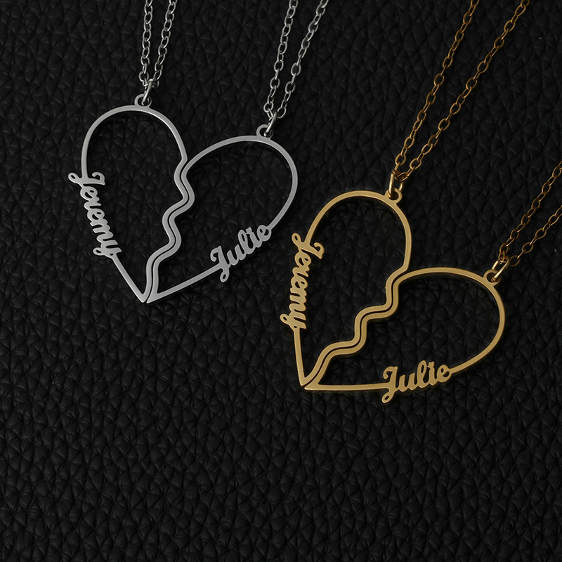 カスタマイズされたステンレス鋼カットラブパズルレターネックレスファッション 2 名前スプライシング鎖骨チェーンクロスボーダー