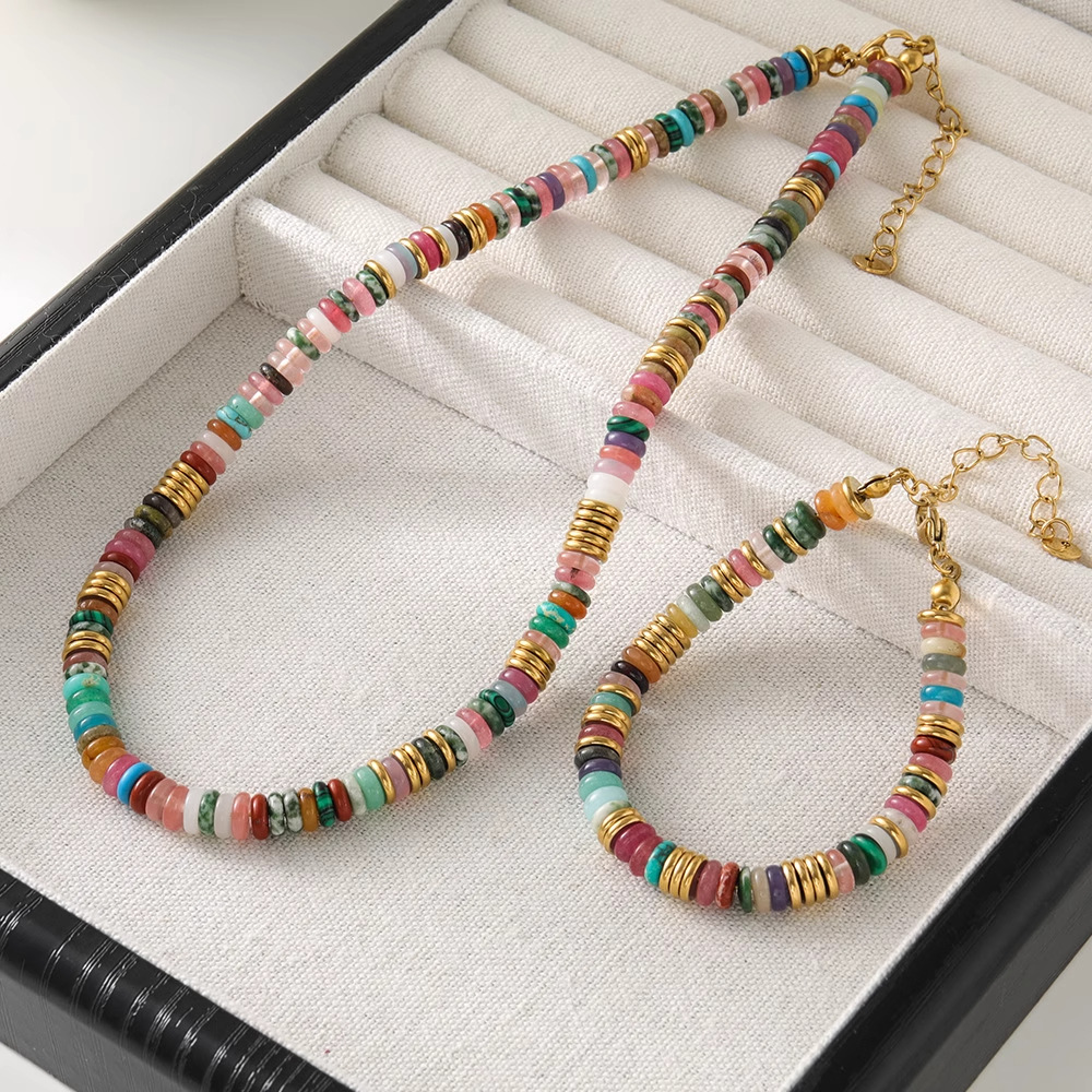 美ラード風カラーフリスビーネックレス夏混色天然石小衆デザインドーパミン軽豪華鎖骨鎖首鎖