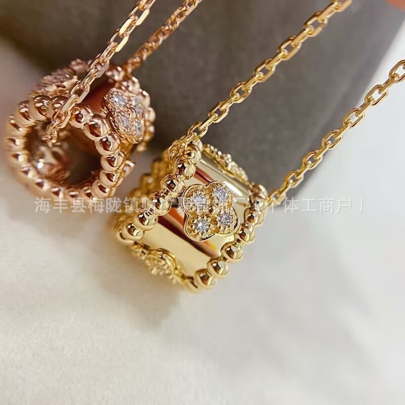 梵家万華鏡のネックレスの女性は真珠の縁の小さい大衆を入れて四つ葉のクローバーの鎖の高級感のペンダントを設計して黄金をめっきします。