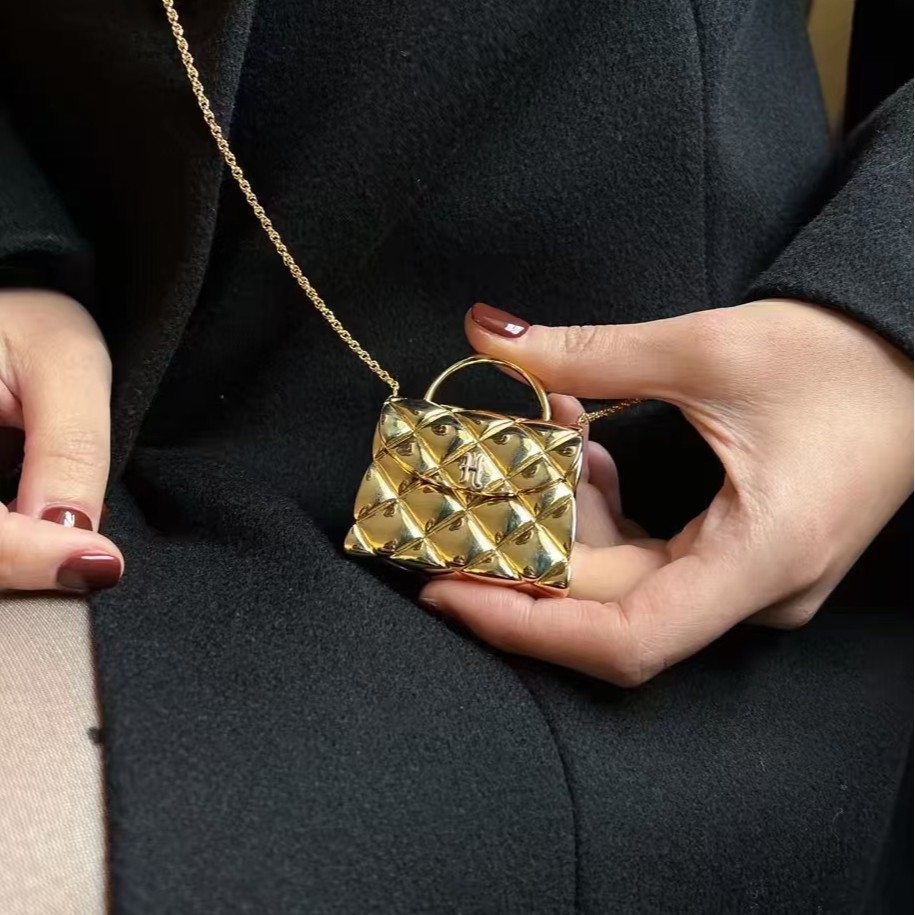 ミニ透かし彫り斜めイヤホンバッグネックレス甘いクールなファッションチェーンペンダント金属首飾り小銭入れネックレス