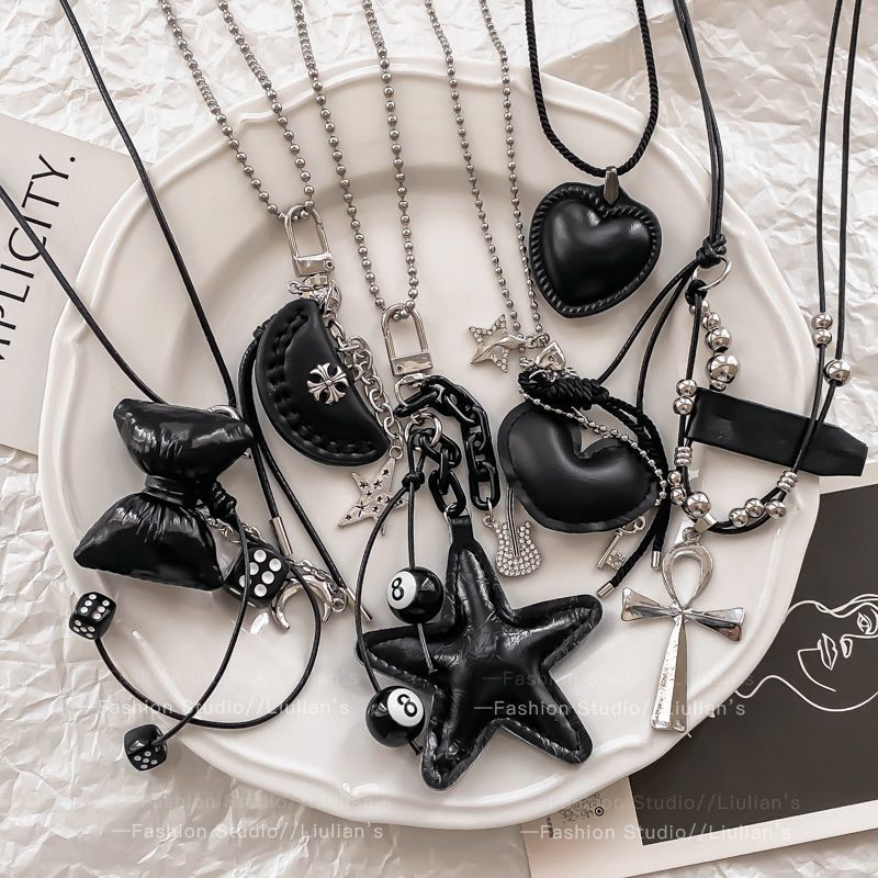 フィーバーと同じスタイルの手作りラブペンダントネックレスレディース編み込み黒ロープウェア装飾アクセサリーロングセーターチェーン
