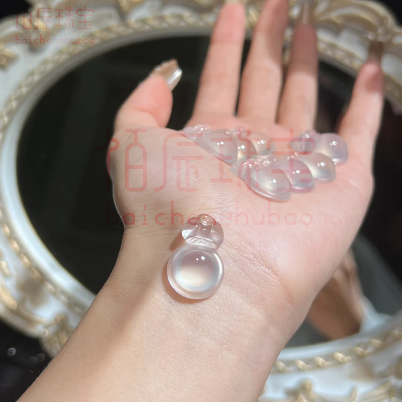 天然高氷白玉髄銭袋ペンダント平は水泡玉氷透玉福袋玉髄部品DIYペンダント
