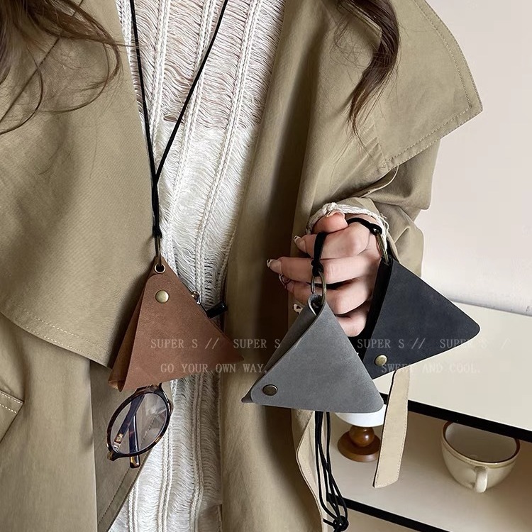 Insシンプルな日系文芸レトロ牛革三角小銭入れネックレスペンダント
