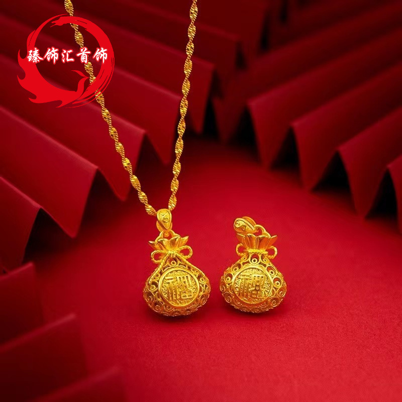 ベトナム沙金金色レトロ透かし彫り財布ペンダントネックレスアクセサリー花糸透かし彫り福袋ペンダントネックレス新作