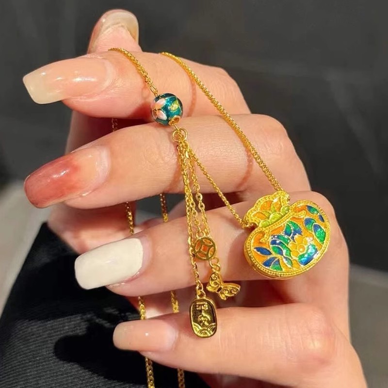 古代サンドゴールド高色保持エナメル幸運のお金袋タッセルネックレス女性の新しい中国風の幸運の袋鎖骨ネックレス