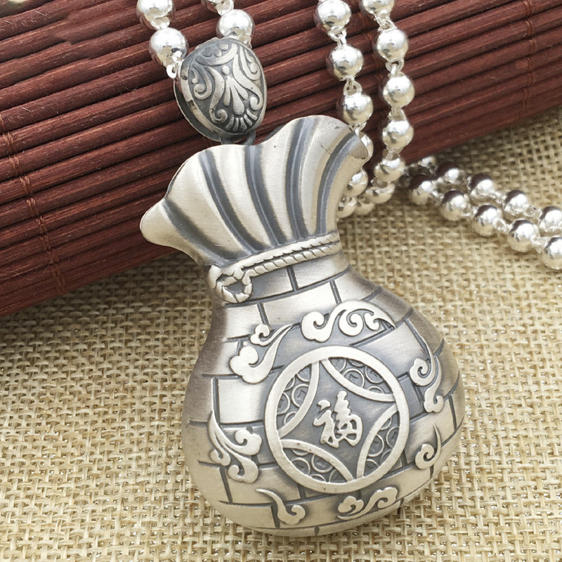 レトロ福袋999純銀ウールチェーン足銀ボールネックレス女性大ペンダント長型個性民族風財布