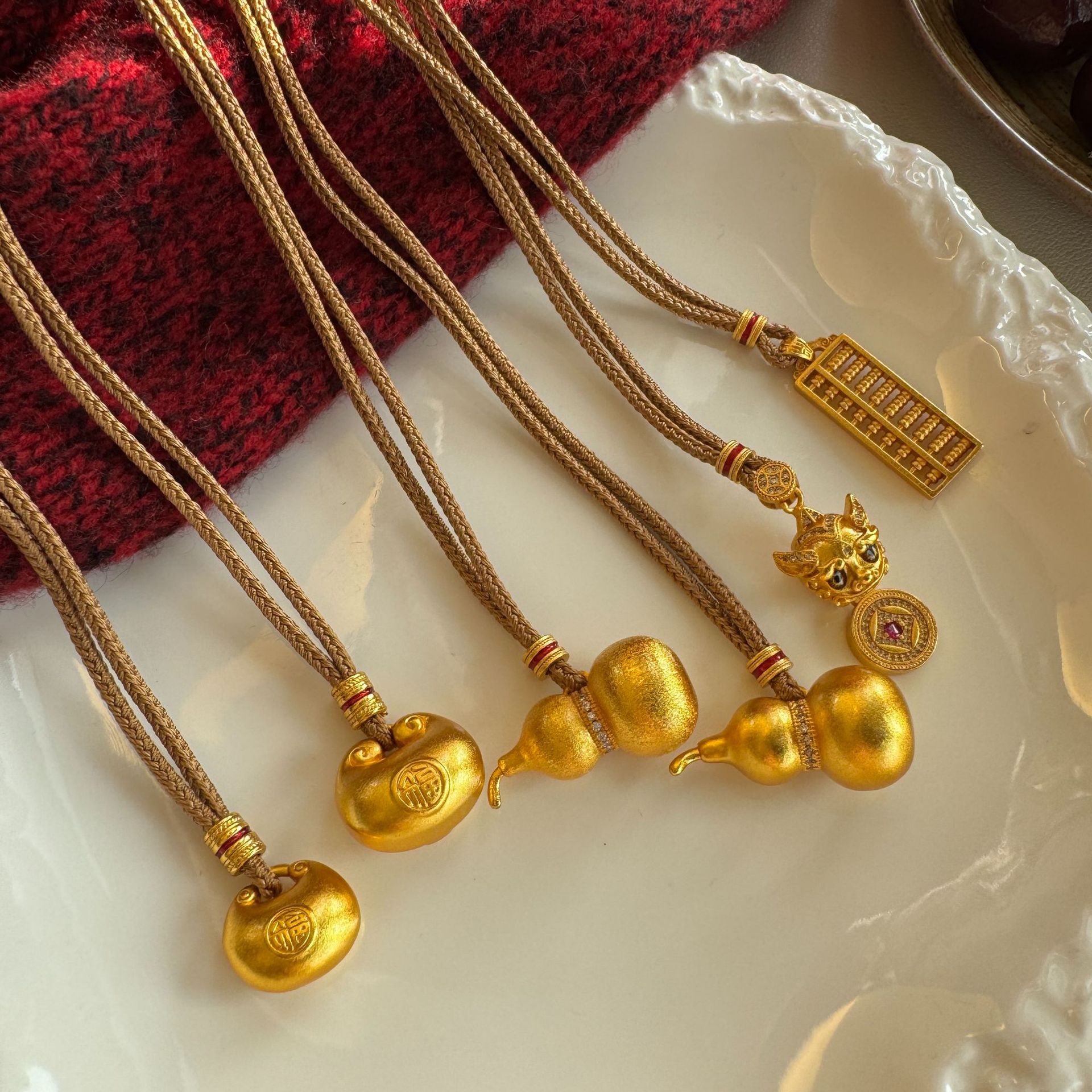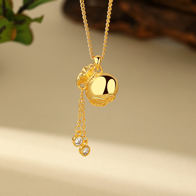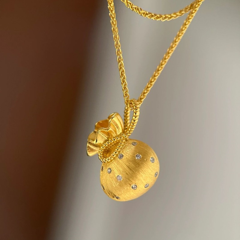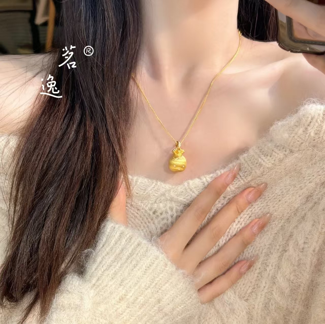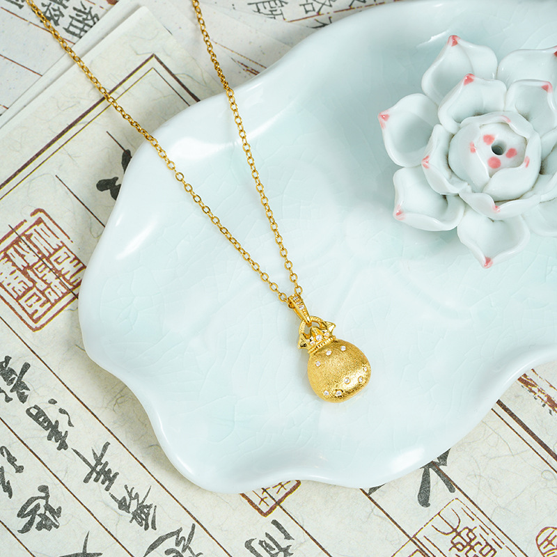 新中国式古法沙金には、小さな福袋のペンダントのネックレスがあります。