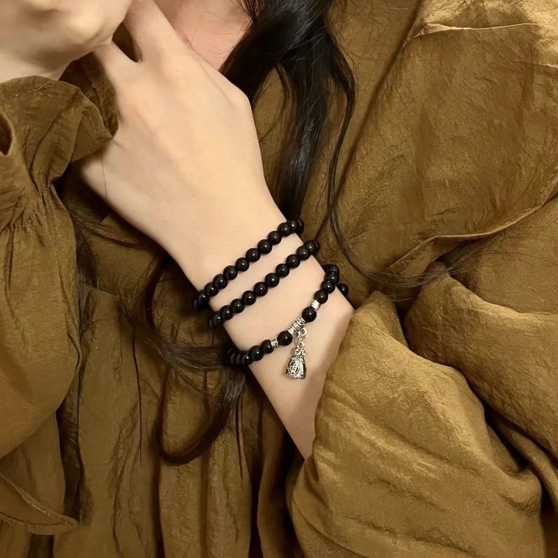電気メッキ古法金は玉の小さい太った福のペンダントの金の坤の平安の鎖の黒い縄の18mmの金の福の袋を入れて玉のペンダントを運びます。