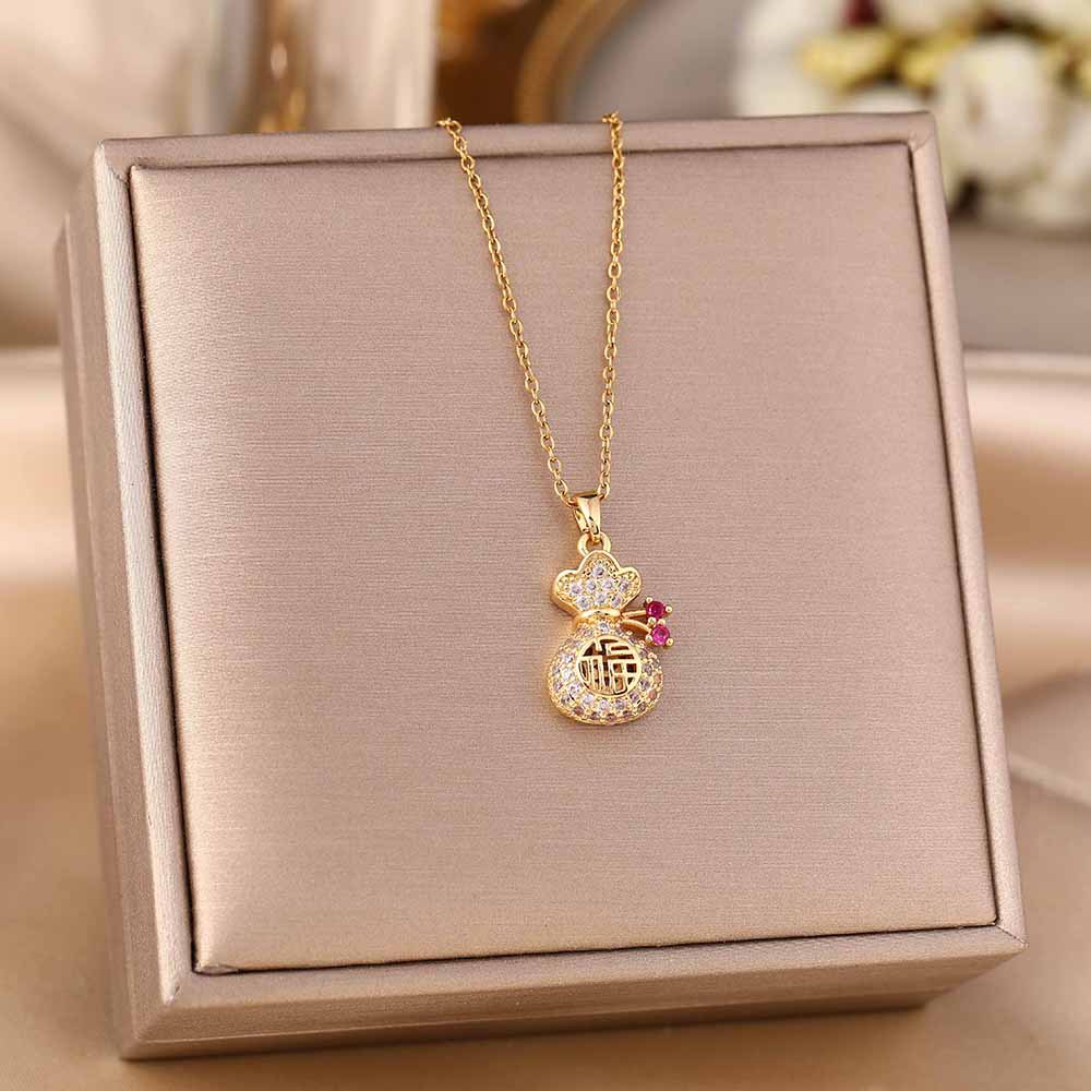 ブラッシュマネーバッグペンダント、高級鎖骨チェーン、ガールフレンドへのギフト、軽くて豪華で絶妙な福袋ペンダント、新しい中国風