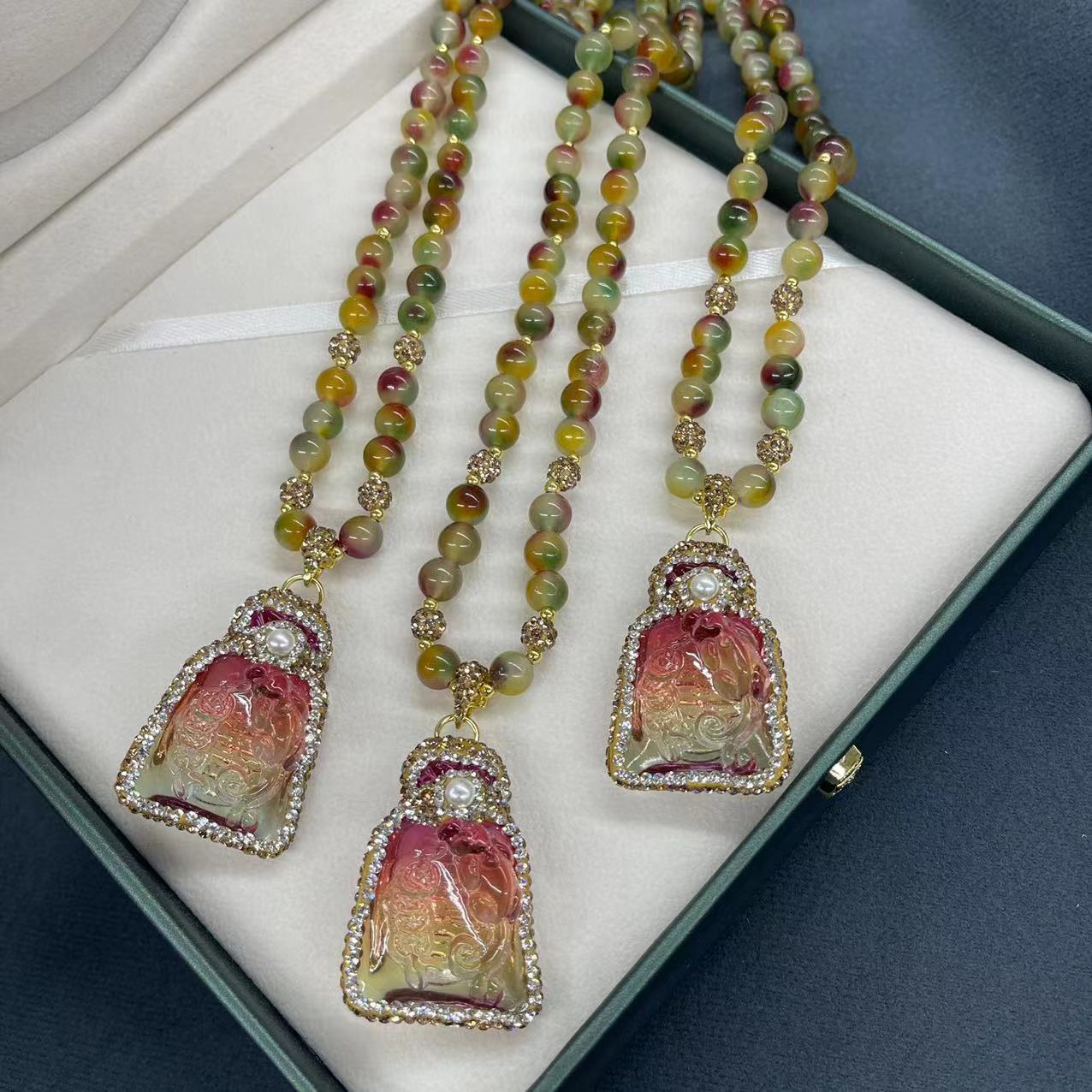 新商品のカラー瑠璃はお金の袋の毛の服のチェーンの天然のカラーの瑪瑙のチェーンの身のネックレスを掛けて爆発的な金のアクセサリーを生放送します。