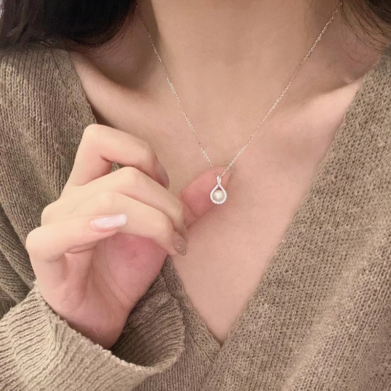 洗練された小さな財布のネックレスは贅沢で高級感がある韓国版S925純銀天然淡水真珠水滴形ペンダント