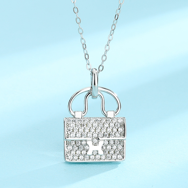 日韓s925銀の財布のネックレスins風の新型の軽い豪華なロックの頭の包みのhはダイヤモンドのペンダントの女性のファッションの装飾品を入れます。