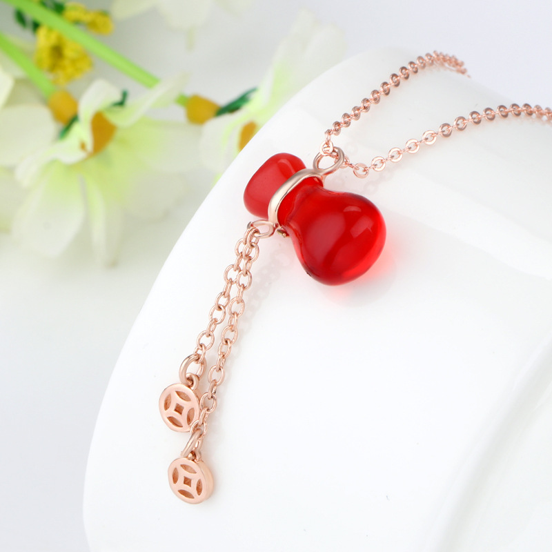 ヒョウタンの財布のネックレスのフリンジの鎖の925純銀の韓国版の小さい大衆の設計感の百合のアクセサリーのペンダントの装飾品