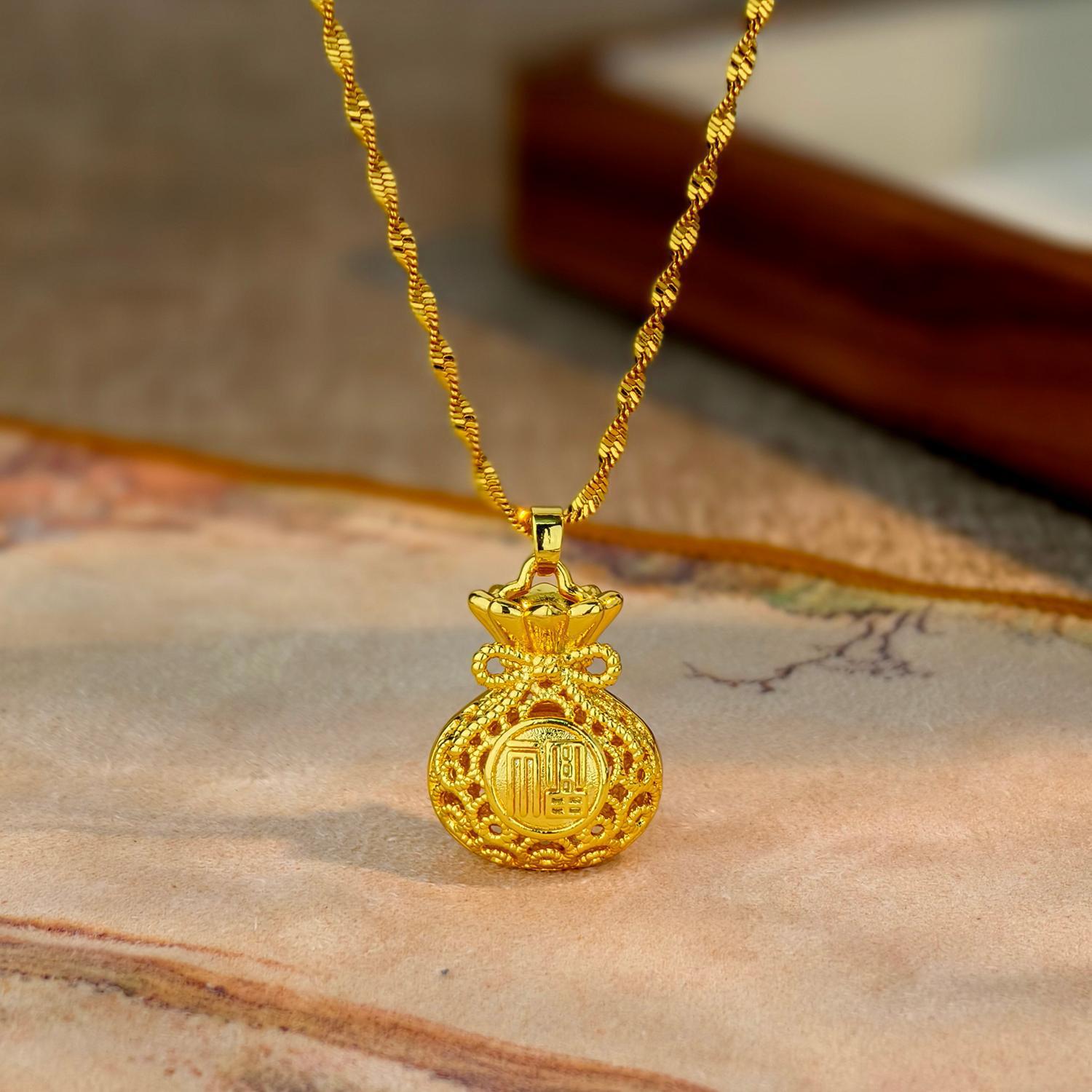 新しいサンドゴールド福袋ネックレス中空祝福ペンダントマネーバッグ抗リアルゴールドペンダントDouyinライブギフトホットセール