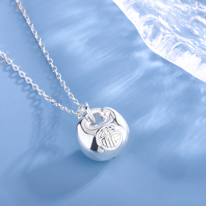 990純銀の太った福のペンダントのネックレスの女性の軽豪華な高級感の国風の鎖の骨のチェーンの百合の立体の財布の項飾り