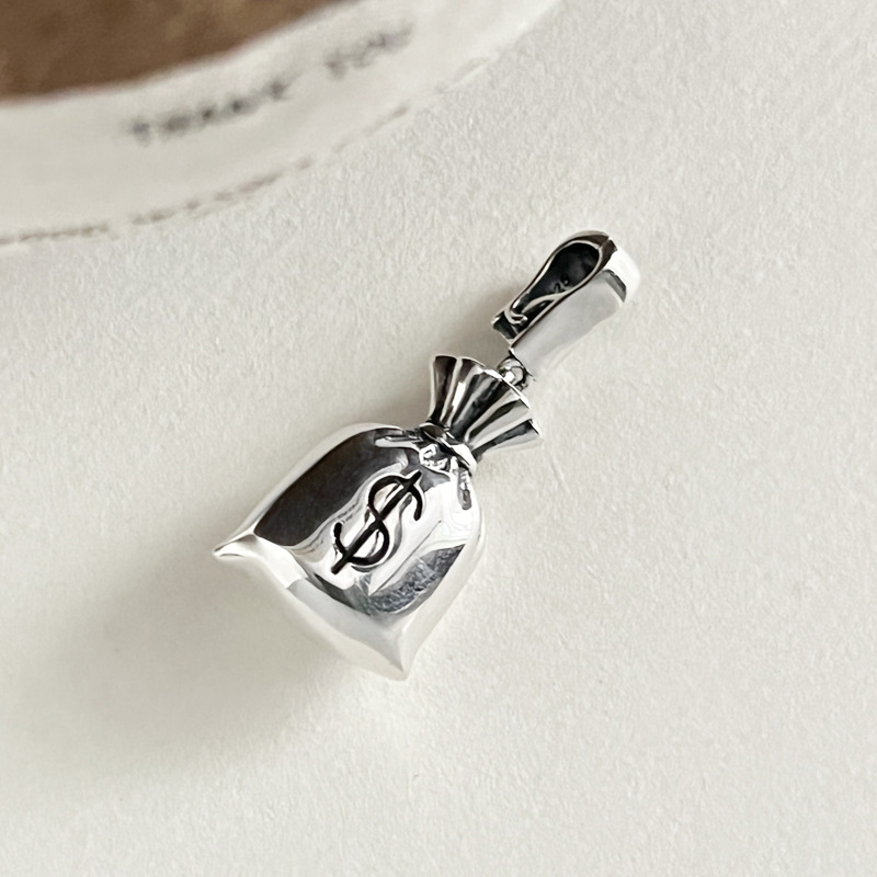 Fanxi S925 シルバー ゴールドメッキ ブラッシュ加工 福袋 ペンダント ネックレス 富と富を引き寄せる マネーバッグ 多用途 鎖骨チェーン