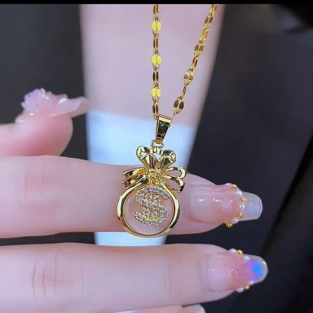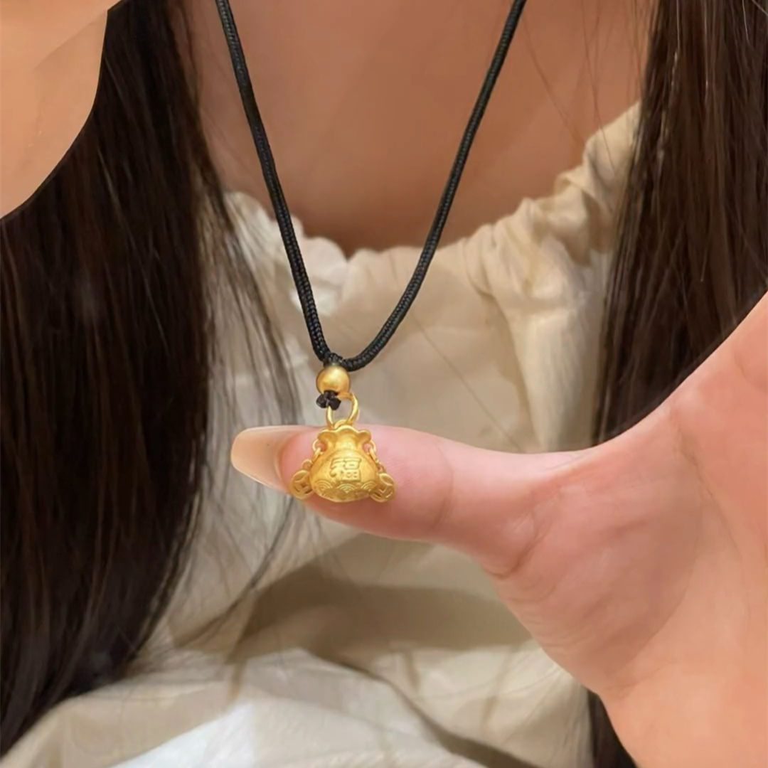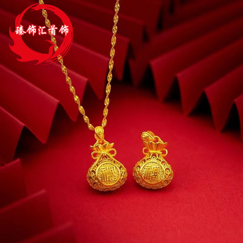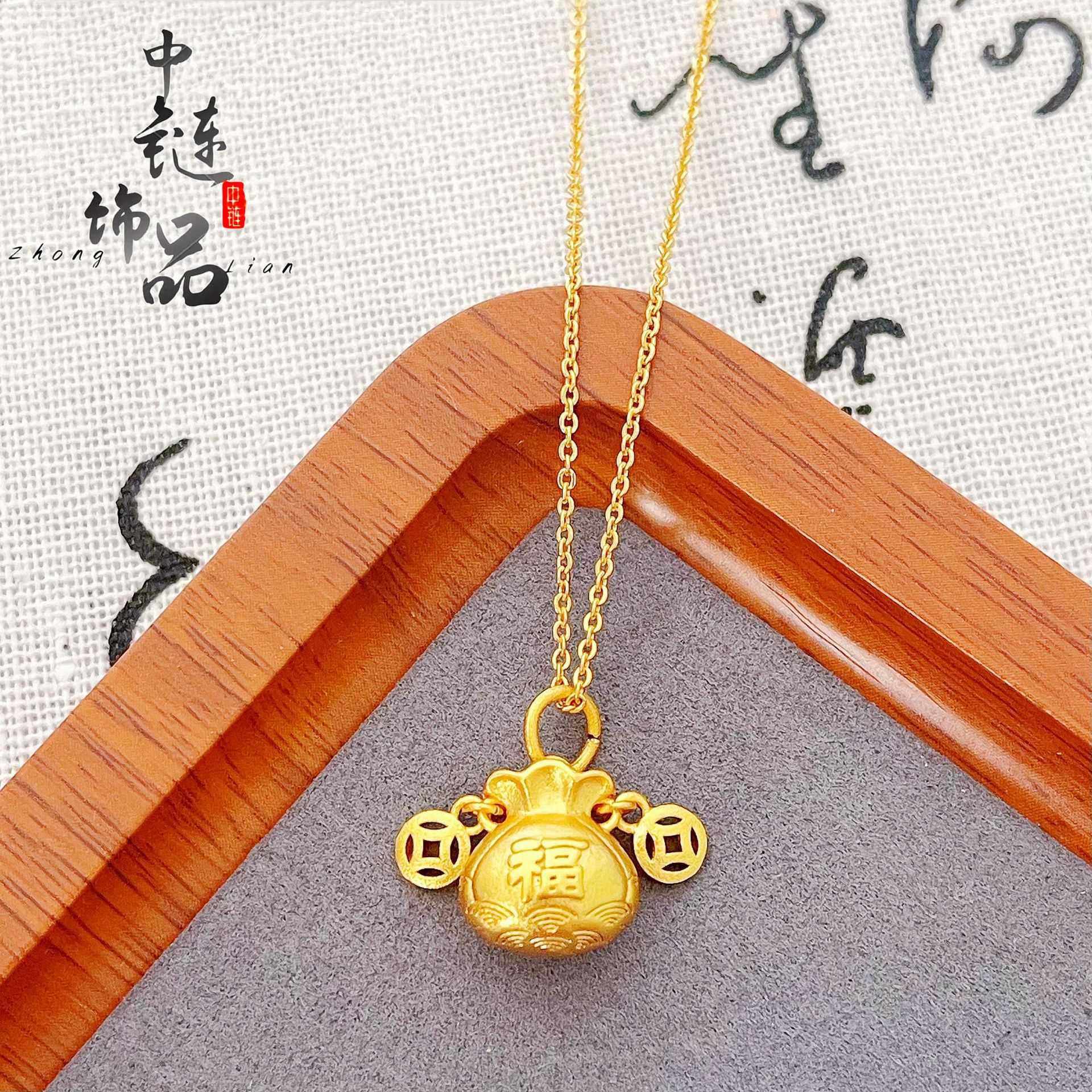ベトナム産砂金細工レトロ透かし彫り福袋チェーンペンダントネックレス金メッキ財布アクセサリー絶妙な軽贅沢